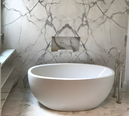 Slope formation for proper drainage, especially in shower floors, is carefully executed to prevent water pooling. Tile alignment, spacing, and layout are meticulously planned to ensure consistent patterns and clean transitions between walls, floors, and fixtures.