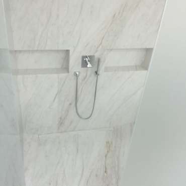 Sealing techniques, expansion joints, and corner transitions are precisely executed to accommodate movement and maintain a watertight system. The result is a bathroom installation that balances safety, comfort, and refined design, while ensuring long-lasting protection against moisture.